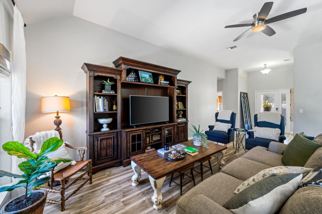 Now available for purchase is this move-in ready 3 bedroom, 2 bathroom home located in Starkey Manor. 1229 Hilltop Road in Kerrville offers a split floor plan with large bedrooms. Walk into a large, open living room with high ceilings and gas fireplace. Vinyl plank flooring runs throughout the home. The kitchen is light, bright, updated and ideal for a chief with the gas cook-top. Quartz countertops in kitchen and bathrooms and stainless steel appliances. Relax in the breakfast area that overlooks the large fenced yard with plenty of room for the kids or dogs to run around. Dining room is currently being utilized as an office but could easily change. The spacious primary bedroom includes a large walk-in closet with custom storage. Contact Jaylynn Perkins at 830-928-5766 to view this home.