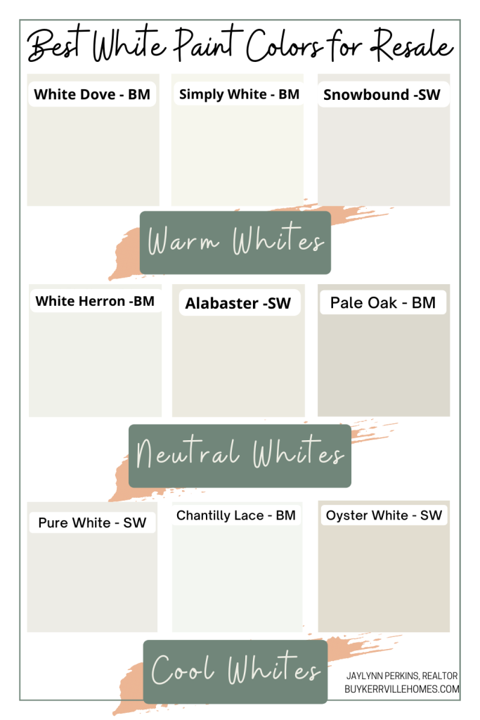 When you sell a property, you want to make a lasting first impression. A fresh coat of paint goes a long way. However, choosing a paint color or a combination of paint colors can be overwhelming. I have narrowed down a variety of white paint colors that will really impress those potential buyers. Keep in mind white paint colors can be tricky. White paint colors have warm or cool undertones. It can really depend on how much natural light a space offers whether a white will work. I have broken down the color options into warm whites, neutral whites and cool white paint colors.