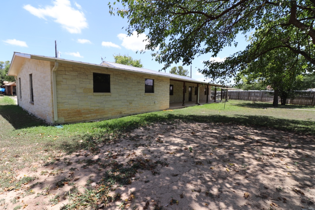 Spacious 3 bedroom, 2 bath home, with attached 2 car garage. The home sits on 2 lots, approximately 0.80 acre. Exterior is fully rocked with a metal roof. Covered patio extends along the back of the house. Kitchen includes electric range, dishwasher and large bar for entertaining. Large laundry room right off the kitchen. Master bedroom has a roomy walk-in closet. Room behind garage could be utilized as a workshop or for extra storage. Located right in town. Close to shopping, schools and parks.